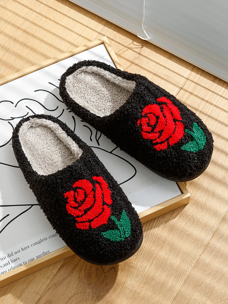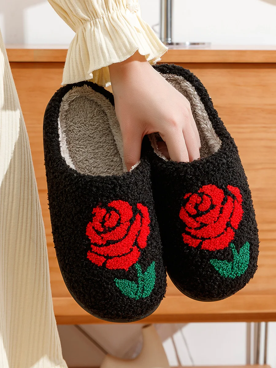 Damen-Winterpantoffeln, romantisches Rosenmotiv, warm, leidenschaftlich, bequem